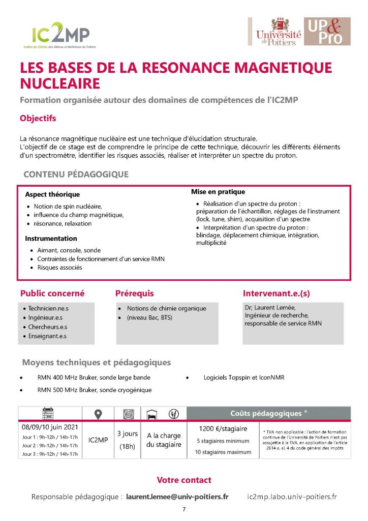 Formation organisée autour des domaines de compétences de l’IC2MP